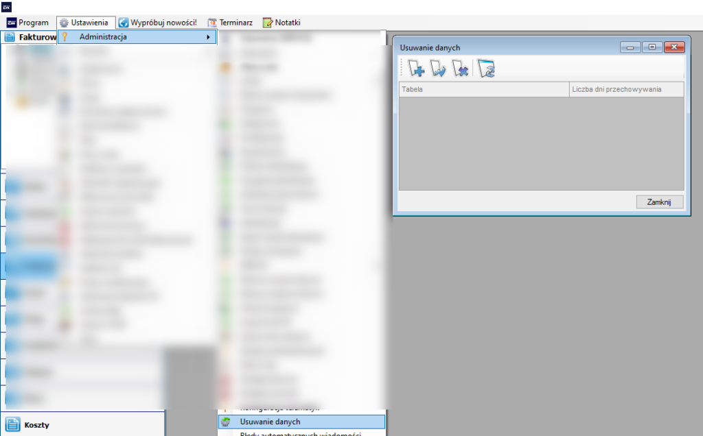 Konfiguracja mechanizmu usuwania wyżej wspomnianych elementów, należy przejść do: