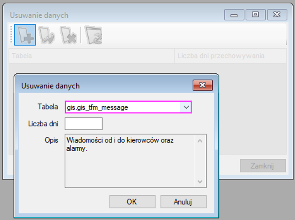 Najniższa możliwa wartość to 31 dni, dla większości tablic jest brana pod uwagę data utworzenia / zapisu za wyjątkiem tabeli licencja.lic_aktualizacja , gdzie przy usuwaniu jest brana pod uwagę data przeprowadzenia instalacji.